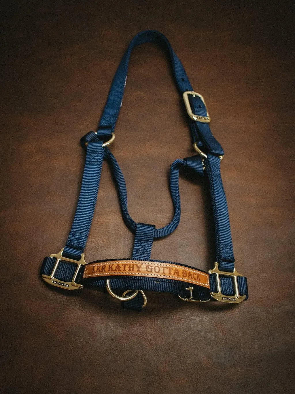 Halfter mit Name – personalisiertes Weaver-Halfter mit Lederbesatz aus Hermann Oak-Leder