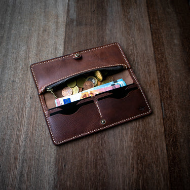 Handgefertigter Geldbeutel aus Echtleder – Braun mit Wax-Finish